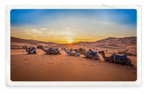 • Sunset desert camel ride* in Sahara Desert Erg Chebbi sand dunes (*option to stay and relax at deluxe camp)